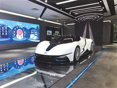 北汽新能源展廳內(nèi)展示的旗下首款純電動超級跑車ARCFOX-7。