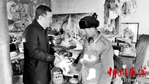 農(nóng)行忻州分行黨委書記、 行長(zhǎng)白建斌為貧困戶送去慰問品。
