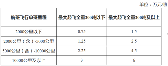 1.對(duì)疫情防控期間執(zhí)飛的不載客國(guó)際貨運(yùn)航班給予獎(jiǎng)勵(lì),獎(jiǎng)勵(lì)標(biāo)準(zhǔn)按航班飛行里程和最大起飛全重分為八檔,具體標(biāo)準(zhǔn)為: