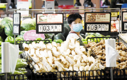 8月10日,消費者在河北省邯鄲市峰峰礦區(qū)一家超市選購蔬菜。新華社發(fā)(郝群英 攝)