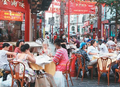 圖為2020年8月9日,英國(guó)倫敦一家中餐館座無虛席。