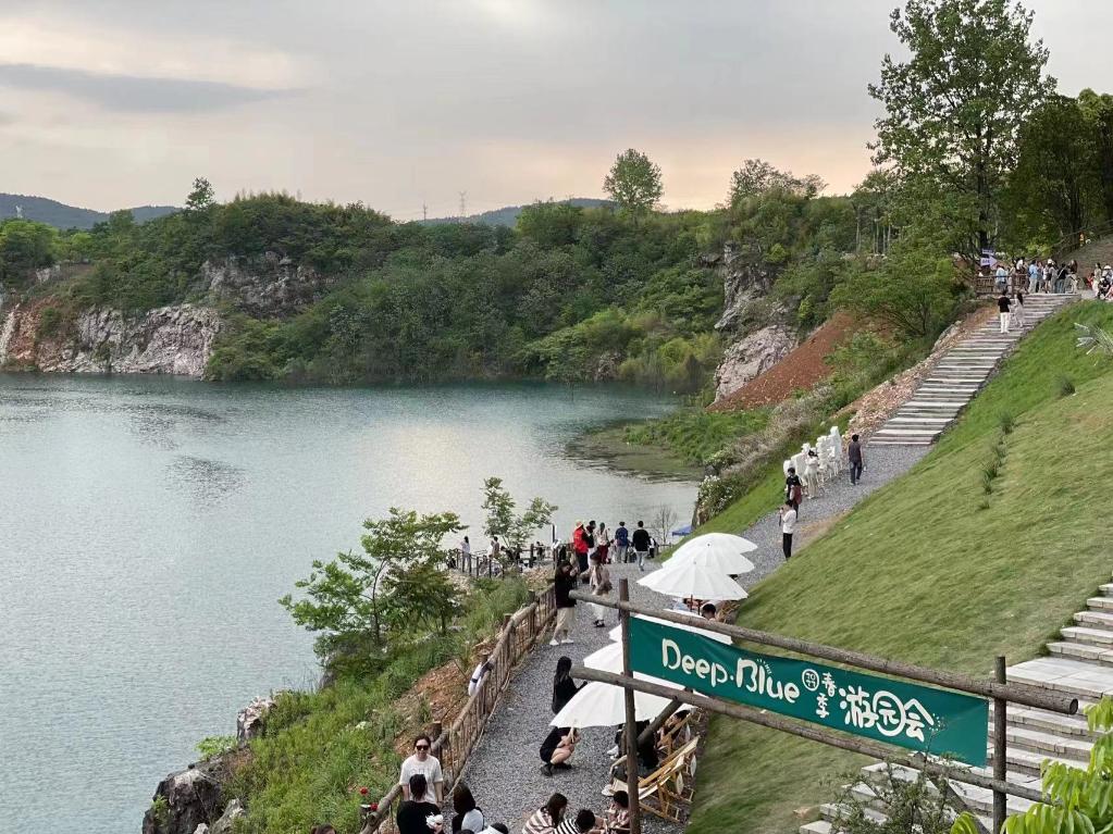 5月2日,浙江安吉,依托廢棄礦坑打造的一家咖啡館吸引了不少游客。 新華社記者段菁菁 攝