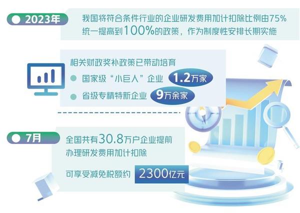 “當前我國正處于調結構、穩(wěn)增長的關鍵節(jié)點,對依靠高水平科技自立自強助力高質量發(fā)展提出了新要求。今年我國出臺的財稅支持科技創(chuàng)新的系列政策舉措,具有力度大、廣覆蓋、多樣化等特點,不僅能提升企業(yè)開展創(chuàng)新活動的‘本金’,還能進一步提振企業(yè)進行持續(xù)性創(chuàng)新的信心。”中國財政科學研究院研究員韓鳳芹表示。