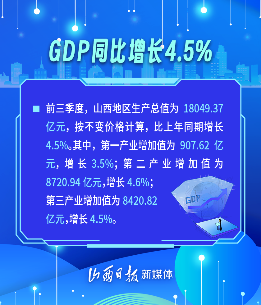 10月23日,山西省統(tǒng)計(jì)局和國(guó)家統(tǒng)計(jì)局山西調(diào)查總隊(duì)聯(lián)合發(fā)布前三季度山西經(jīng)濟(jì)運(yùn)行情況。前三季度,山西經(jīng)濟(jì)繼續(xù)保持平穩(wěn)復(fù)蘇、穩(wěn)中向好的發(fā)展態(tài)勢(shì),三次產(chǎn)業(yè)穩(wěn)步增長(zhǎng),有效需求逐步恢復(fù),就業(yè)物價(jià)總體穩(wěn)定。詳細(xì)數(shù)據(jù),一組海報(bào)了解。