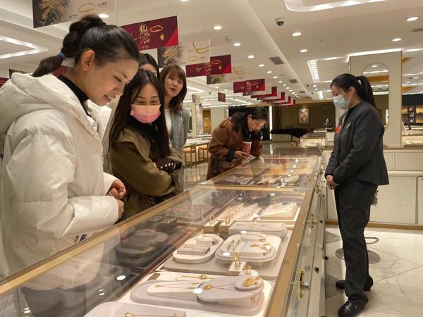 終端消費(fèi)、投資熱帶動(dòng)金店銷量大幅提升。老鳳祥豫園店經(jīng)理蔣偉棟介紹,其所在門店前兩個(gè)月的銷售額同比增長(zhǎng)了50%?!斑@背后的原因一方面有春節(jié)等假期元素的帶動(dòng),需求增多,另一方面也有消費(fèi)者投資增加的帶動(dòng)。”