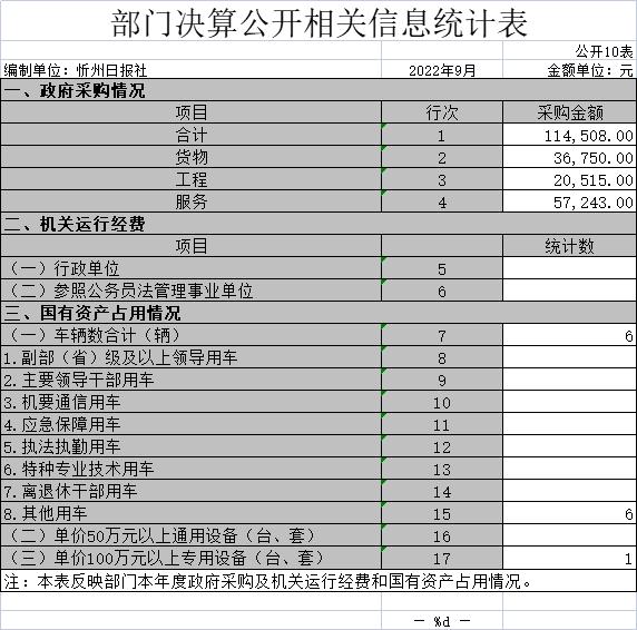 十、部門決算公開相關(guān)信息統(tǒng)計(jì)表