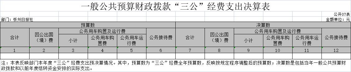 說明:忻州日?qǐng)?bào)社沒有一般公共預(yù)算財(cái)政撥款“三公經(jīng)費(fèi)”安排的支出,故本表無數(shù)據(jù)。
