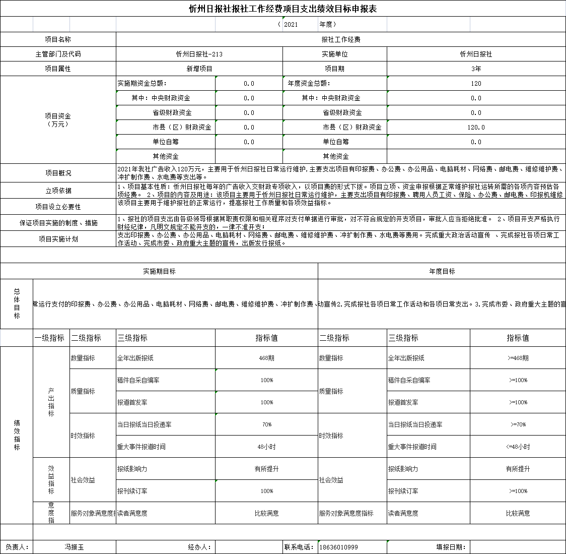一、2021年忻州日?qǐng)?bào)社績效目標(biāo)申報(bào)表