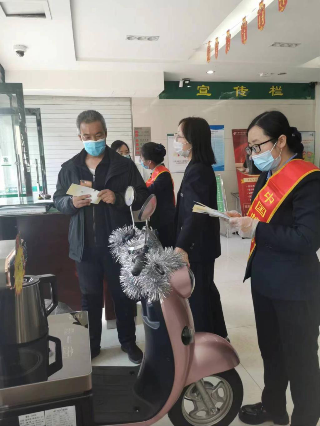 活動(dòng)使用統(tǒng)一印制的“綠色金融產(chǎn)品手冊(cè)”,以積極宣傳支行支持我縣生態(tài)文明建設(shè)的政策、產(chǎn)品和成效,提升社會(huì)公眾認(rèn)知為目標(biāo),重點(diǎn)針對(duì)綠色金融產(chǎn)品進(jìn)行了宣傳。對(duì)內(nèi),支行營業(yè)網(wǎng)點(diǎn)在活動(dòng)期間,在網(wǎng)點(diǎn)LED上打出活動(dòng)標(biāo)語,網(wǎng)點(diǎn)內(nèi)醒目位置擺放了宣傳折頁,同時(shí),由網(wǎng)點(diǎn)大堂經(jīng)理等工作人員對(duì)來網(wǎng)點(diǎn)辦理業(yè)務(wù)人員進(jìn)行宣傳教育,普及綠色金融知識(shí)。