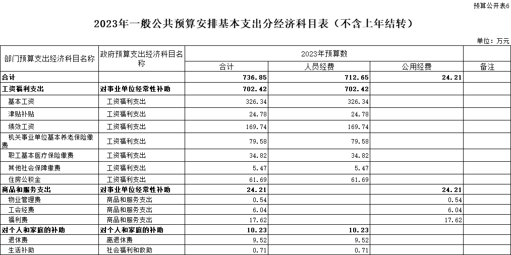 基本支出736.85萬元,比2022年增加10.69萬元,基本支出系按現(xiàn)有人員工資標(biāo)準(zhǔn)和公共經(jīng)費(fèi)定額標(biāo)準(zhǔn)核定,主要用于保障機(jī)關(guān)正常運(yùn)轉(zhuǎn)、完成日常工作任務(wù)而發(fā)生的各項(xiàng)支出。其中:工資福利支出702.42萬元,對(duì)個(gè)人和家庭的補(bǔ)助支出10.23萬元,公用經(jīng)費(fèi)項(xiàng)目24.21萬元。