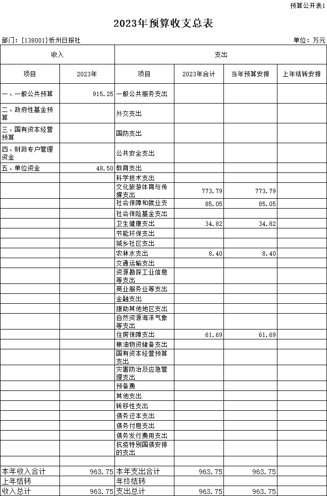 忻州日?qǐng)?bào)社2023年收入預(yù)算963.75萬元,比2022年減少92.81萬元。