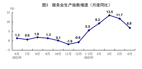 上半年,服務(wù)業(yè)增加值同比增長6.4%,比一季度加快1.0個(gè)百分點(diǎn)。其中,住宿和餐飲業(yè),信息傳輸、軟件和信息技術(shù)服務(wù)業(yè),租賃和商務(wù)服務(wù)業(yè),金融業(yè),批發(fā)和零售業(yè)增加值分別增長15.5%、12.9%、10.1%、7.3%、6.6%。6月份,服務(wù)業(yè)生產(chǎn)指數(shù)同比增長6.8%。其中,住宿和餐飲業(yè),信息傳輸、軟件和信息技術(shù)服務(wù)業(yè),租賃和商務(wù)服務(wù)業(yè)生產(chǎn)指數(shù)分別增長20.0%、15.4%、9.3%。1-5月份,全國規(guī)模以上服務(wù)業(yè)企業(yè)營業(yè)收入同比增長8.5%。6月份,服務(wù)業(yè)商務(wù)活動(dòng)指數(shù)為52.8%,業(yè)務(wù)活動(dòng)預(yù)期指數(shù)為60.3%。其中,航空運(yùn)輸、郵政快遞、電信廣播電視及衛(wèi)星傳輸服務(wù)、貨幣金融服務(wù)、保險(xiǎn)等行業(yè)商務(wù)活動(dòng)指數(shù)均位于60.0%及以上高位景氣區(qū)間。