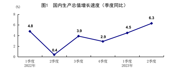 2022年各季度及2023年一季度、二季度GDP環(huán)比增速分別為1.0%、-1.9%、3.2%、0.5%、2.2%和0.8%。