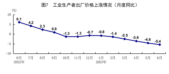上半年,全國工業(yè)生產(chǎn)者出廠價(jià)格同比下降3.1%。其中,6月份同比下降5.4%,環(huán)比下降0.8%。上半年,工業(yè)生產(chǎn)者購進(jìn)價(jià)格同比下降3.0%。其中,6月份同比下降6.5%,環(huán)比下降1.1%。