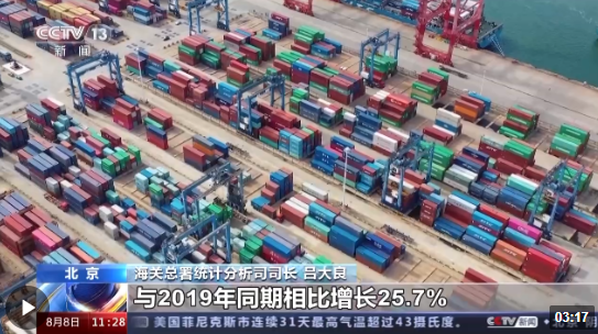 海關總署今天(8月8日)對外公布,今年前7個月,我國貨物貿易進出口總值23.55萬億元,外貿運行平穩(wěn)、符合預期。