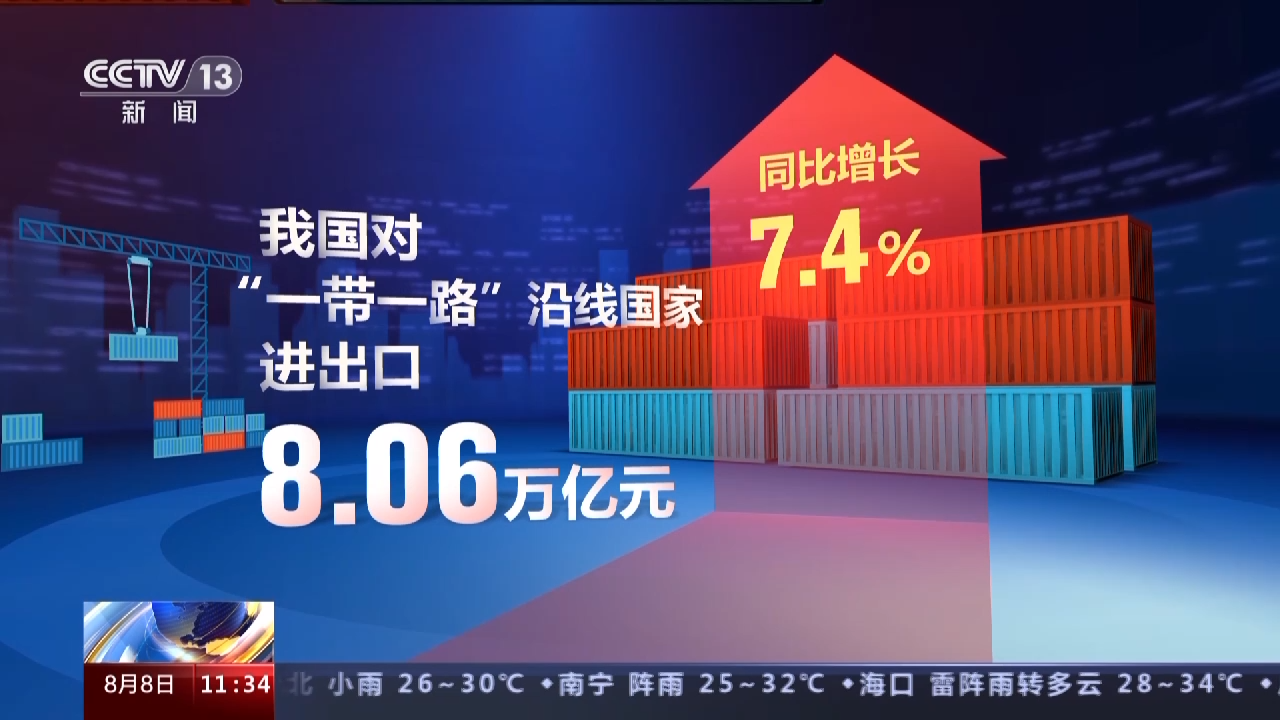 我國對“一帶一路”沿線國家進出口8.06萬億元,同比增長7.4%,占我國外貿比重同比提升2.2個百分點至34.2%,國際市場更加多元化。