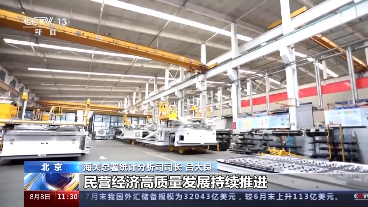 海關總署統(tǒng)計分析司司長 呂大良:今年以來,民營企業(yè)進出口增速高于整體,占比進一步提升,參與外貿的民營企業(yè)數量不斷增加,前7個月達到47.8萬家,同比多了3.6萬家。近期,關于促進民營經濟發(fā)展壯大的意見發(fā)布實施,民營經濟高質量發(fā)展持續(xù)推進,民營企業(yè)的國際競爭力將進一步提高。