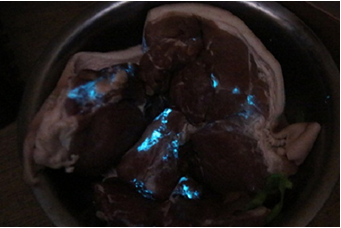 據(jù)媒體2010年12月6日?qǐng)?bào)道,湖南長(zhǎng)沙市個(gè)別市場(chǎng)銷售的豬肉在夜間居然能發(fā)出幽幽的藍(lán)光,這一現(xiàn)象引起廣大消費(fèi)者的恐慌。湖南省獸藥飼料監(jiān)察所所長(zhǎng)鄧云波介紹,豬肉之所以夜間發(fā)光是生豬屠宰后被發(fā)光菌所污染導(dǎo)致。