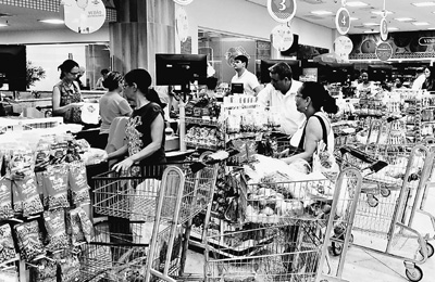 由于巴西通貨膨脹攀升導(dǎo)致消費(fèi)不振,民眾購(gòu)物更趨謹(jǐn)慎。圖為在里約熱內(nèi)盧一家超市,當(dāng)?shù)孛癖娫诓少?gòu)生活必需品。記者 顏 歡攝
