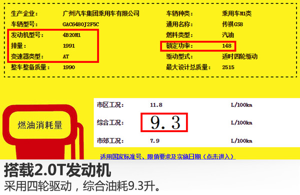 動力方面,從國家工信部公布的信息可知,廣汽傳祺GS8將搭載一臺型號為4B20M1的2.0升直列四缸渦輪增壓發(fā)動機,額定功率148千瓦,匹配6速自動變速箱。百公里綜合油耗分別為:兩驅車型8.7升,四驅車型9.3升。