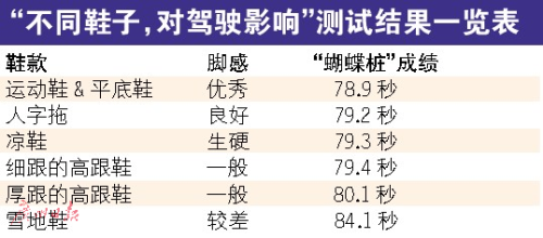 為讓測試更加接近于真相,此次測試專門請來一位女士參與。她穿上不同的鞋子駕駛同樣一輛汽車。測試項目分兩種,一是直觀感受,駕駛員描述不同鞋子對駕駛習慣的影響;二是讓數(shù)據(jù)說話,穿上不同的鞋子挑戰(zhàn)經(jīng)典的場地測試項目“蝴蝶樁”,看所耗時間的多與少。