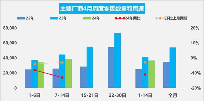 4月前兩周主要廠商零售銷量。數(shù)據(jù)來源:乘聯(lián)會