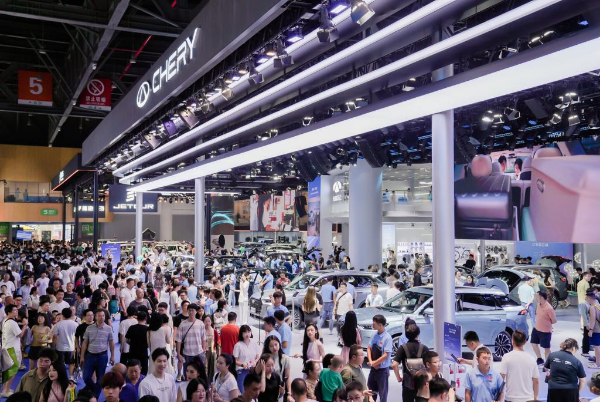 圖為2024成都國(guó)際車(chē)展上人頭攢動(dòng)的奇瑞展區(qū)
