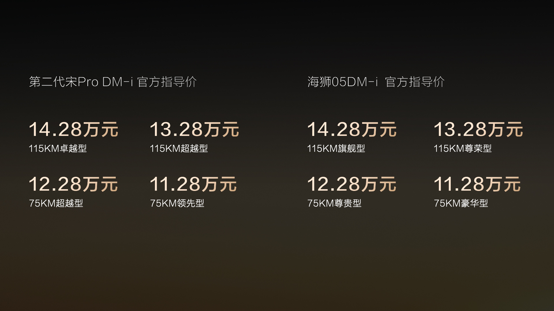 9月23日,搭載比亞迪第五代DM技術的海獅05DM-i及第二代宋Pro DM-i正式上市。比亞迪海洋網(wǎng)總經(jīng)理張卓、王朝網(wǎng)總經(jīng)理路天與德云社演員閻鶴祥、孟鶴堂同臺互動,講述國民SUV的四門功課。兩款新車各推出4個版本,官方指導價11.28-14.28萬元,加速SUV市場新能源變革。超16項全系標配,入門即高配,充分展現(xiàn)了比亞迪持續(xù)以科技創(chuàng)新推動技術普惠,引領新能源汽車行業(yè)變革的決心。
