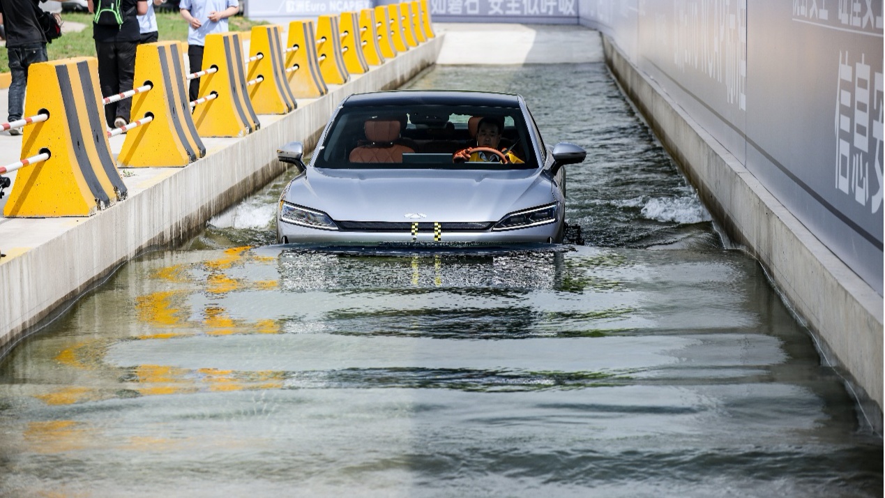 在鐵人三項(xiàng)中,同一輛風(fēng)云A9L模擬極端環(huán)境與事故場(chǎng)景,先經(jīng)過超越國(guó)家4倍標(biāo)準(zhǔn)的400mm深水區(qū),隨后又以40km/h時(shí)速、40mm重疊量完成刮底實(shí)驗(yàn),并以超越行業(yè)通常做法2.95~3.36倍的55km/h的速度完成中心柱碰。三大實(shí)驗(yàn)后,車輛動(dòng)力系統(tǒng)完整,電池包無泄漏且絕緣電阻穩(wěn)定在500Ω/V以上。