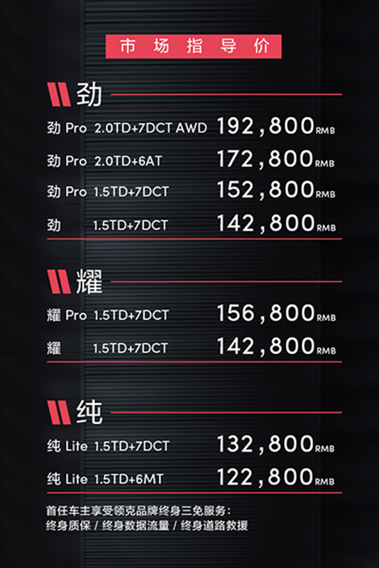 6月28日,領(lǐng)克02正式上市,售價(jià)區(qū)間為12.28-19.28萬(wàn)元,共計(jì)8款車(chē)型。同時(shí),所有購(gòu)買(mǎi)領(lǐng)克02的首任車(chē)主,都將享受到終身免費(fèi)質(zhì)保、終身免費(fèi)數(shù)據(jù)流量、終身免費(fèi)道路救援的三免服務(wù)。此外,領(lǐng)克01 PHEV也將于7月27日通過(guò)在線(xiàn)商城的方式對(duì)外銷(xiāo)售,共推出2款車(chē)型,補(bǔ)貼前預(yù)售價(jià)區(qū)間24-27萬(wàn)元。