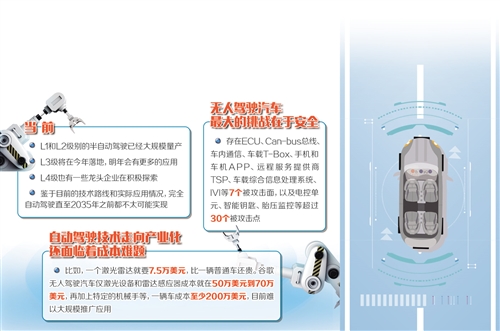 當(dāng)前,L1和L2級別半自動駕駛已經(jīng)大規(guī)模量產(chǎn);L3級將在今年落地,明年會有更多應(yīng)用;L4級也有一些龍頭企業(yè)在積極探索。但是,針對“2030年左右就可實(shí)現(xiàn)無人駕駛產(chǎn)業(yè)化”的預(yù)測,專家則持謹(jǐn)慎態(tài)度。要真正實(shí)現(xiàn)完全意義上的無人駕駛,還面臨著安全、成本等一系列難題,需要產(chǎn)業(yè)界和全社會合力推動解決。