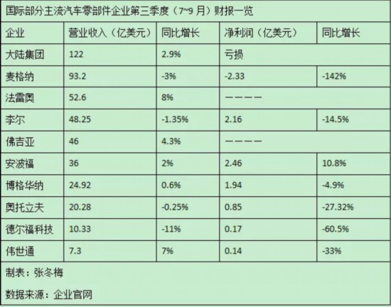 在汽車行業(yè)陰霾加重和裁員風(fēng)波的抗議聲中,近日,大陸集團(tuán)、麥格納、電裝、愛(ài)信精機(jī)、佛吉亞、法雷奧等多家跨國(guó)汽車零部件巨頭陸續(xù)公布了第三季度(7~9月)財(cái)報(bào)。全球汽車經(jīng)濟(jì)低迷的巨大壓力,懸而未決的貿(mào)易沖突,再加上9月中旬開(kāi)始的通用汽車工人大罷工等,讓汽車產(chǎn)業(yè)上游供應(yīng)鏈雪上加霜。大多數(shù)供應(yīng)商出現(xiàn)了營(yíng)收或利潤(rùn)下滑,并伴隨著裁員、削減成本、下調(diào)全年預(yù)期等。