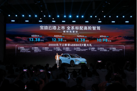 央廣網(wǎng)北京9月11日消息(記者 姜鵬)9月10日,上汽通用五菱汽車旗下寶駿品牌首款智能長(zhǎng)續(xù)航SUV寶駿云海上市,新車提供60km插混版、140km插混版、500km純電版、600km純電版共4款配置,限時(shí)先享指導(dǎo)價(jià)為10.98萬(wàn)元-13.38萬(wàn)元(僅限2024年11月1日前完成大定鎖單的用戶)。