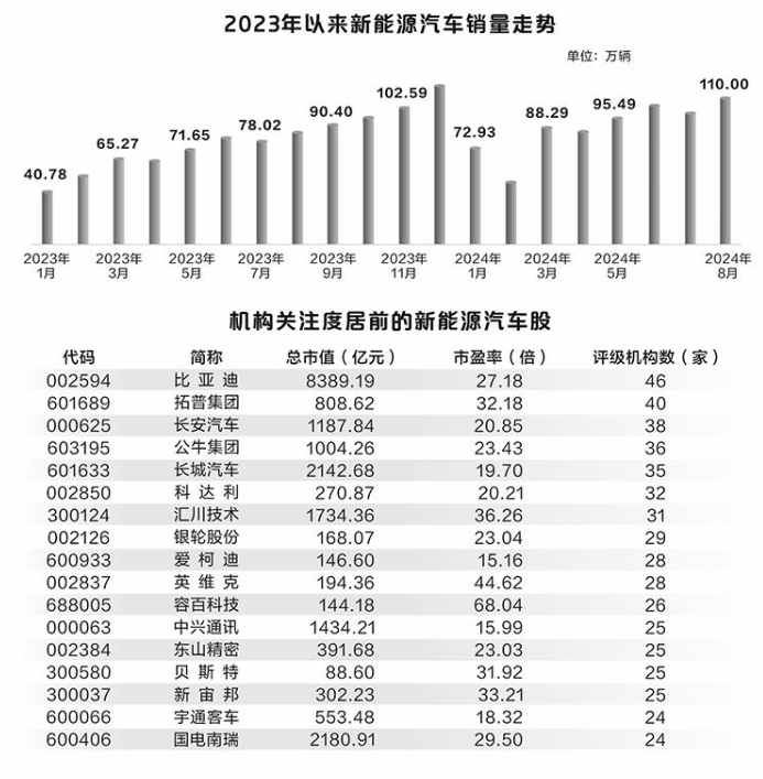 以舊換新政策加碼后,新能源汽車前景持續(xù)向好,多家機(jī)構(gòu)看好未來銷量進(jìn)一步增長(zhǎng)。