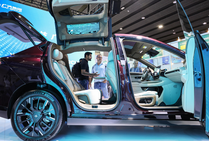 (資料圖片)采購商在參觀今年廣交會上展示的中國新能源汽車。新華社記者 劉大偉 攝