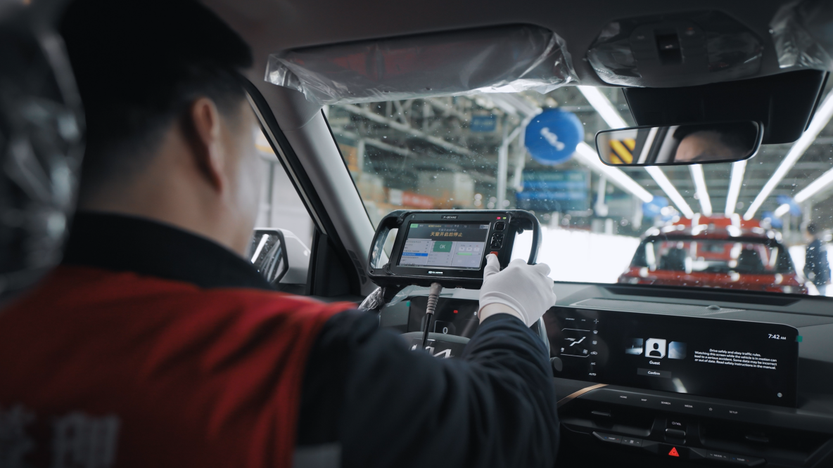 總裝車間作為汽車生產(chǎn)最后一道關卡,采用柔性生產(chǎn)線與數(shù)字化生產(chǎn)系統(tǒng),配備ONEKIT物流系統(tǒng)、緊固履歷系統(tǒng)及工業(yè)視覺技術(shù)。實時監(jiān)測總裝數(shù)據(jù)與指標,確保每輛下線汽車符合全球統(tǒng)一生產(chǎn)標準,保障總裝品質(zhì)與效率。