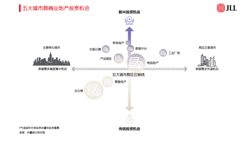 仲量聯(lián)行中國區(qū)研究部總監(jiān)姚耀表示:“五大城市群中的主要核心城市將在支撐傳統(tǒng)的辦公樓和零售地產(chǎn)市場的同時,催生產(chǎn)業(yè)園區(qū)、長租公寓等新興投資機會;周邊衛(wèi)星城則將承接需求外溢,物流地產(chǎn)將迎重大利好,工業(yè)廠房、數(shù)據(jù)中心等也將獲得投資者的關(guān)注。隨著各物業(yè)類型的需求進(jìn)一步演進(jìn),五大城市群將推動商業(yè)地產(chǎn)投資機會愈發(fā)多元化?!?/p>