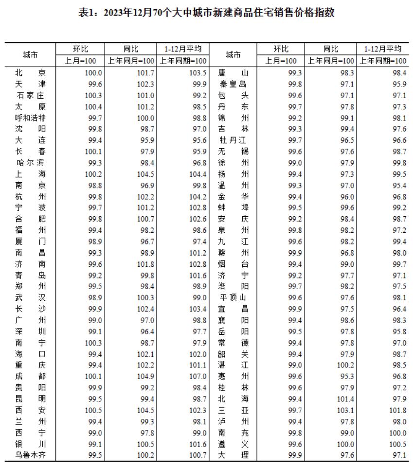 中新網(wǎng)1月17日電 1月17日,國(guó)家統(tǒng)計(jì)局公布的數(shù)據(jù)顯示,2023年12月份,70個(gè)大中城市中,各線城市商品住宅銷售價(jià)格環(huán)比下降、同比有漲有降。