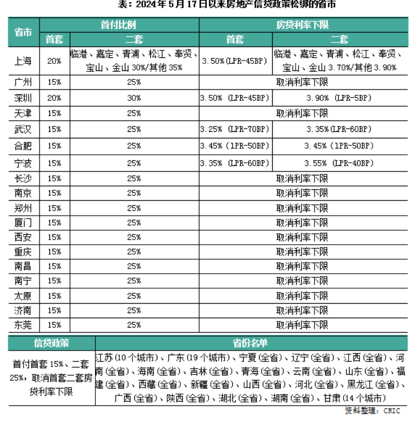 5月17日,央行將首套、二套房首付比例下限再下調5個百分點,調整后分別為15%、25%。此后據(jù)克而瑞研究中心統(tǒng)計,山東、福建、河南等超22個省份已經(jīng)落地執(zhí)行,全國超過200個城市15%首套房最低首付比例。
