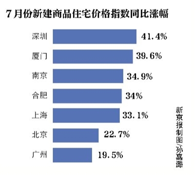 國家統(tǒng)計局?jǐn)?shù)據(jù)顯示:7月份廈門新建商品住宅價格指數(shù)較上月環(huán)比增長4.6%,較去年同比漲幅達(dá)39.6%。