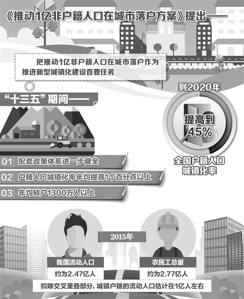 如何推動(dòng)1億左右農(nóng)業(yè)轉(zhuǎn)移人口和其他常住人口等非戶(hù)籍人口在城市落戶(hù),使有能力在城鎮(zhèn)穩(wěn)定就業(yè)和生活的農(nóng)業(yè)轉(zhuǎn)移人口舉家進(jìn)城落戶(hù),是我國(guó)推進(jìn)新型城鎮(zhèn)化面臨的迫切任務(wù)。不久前,國(guó)務(wù)院辦公廳印發(fā)了《推動(dòng)1億非戶(hù)籍人口在城市落戶(hù)方案》(以下簡(jiǎn)稱(chēng)《方案》)。