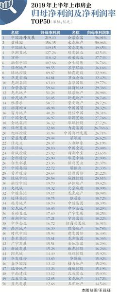為了反映上半年上市房企的利潤表現(xiàn),新京報(bào)聯(lián)合億翰智庫推出《2019年上半年上市房企歸母凈利潤率TOP50》榜單。由于單一考察歸母凈利潤率(歸母凈利潤/營業(yè)收入),會受非經(jīng)常性損益、營業(yè)外收入和投資物業(yè)重估等因素的影響,因此本榜單同時(shí)考察企業(yè)的歸母凈利潤規(guī)模,以期全面反映上市房企的盈利水平。