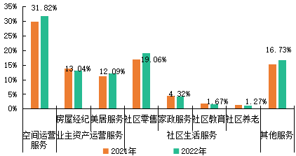 2021-2022年百?gòu)?qiáng)企業(yè)社區(qū)增值服務(wù)分類及占比情況