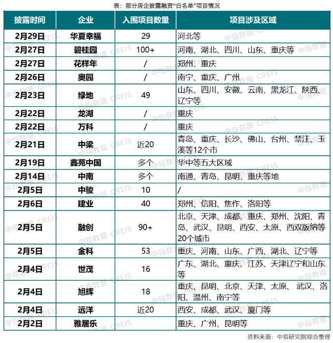 根據(jù)中指研究院監(jiān)測,城市房地產(chǎn)融資協(xié)調(diào)機(jī)制建立以來,鄭州、成都、重慶、昆明等城市上報(bào)項(xiàng)目數(shù)量均超200個(gè),部分出險(xiǎn)房企也有多個(gè)項(xiàng)目進(jìn)入白名單,在“推送-反饋”工作閉環(huán)下,出險(xiǎn)房企的項(xiàng)目獲得融資支持的機(jī)會(huì)也有望增加,有利于進(jìn)一步穩(wěn)定市場預(yù)期。