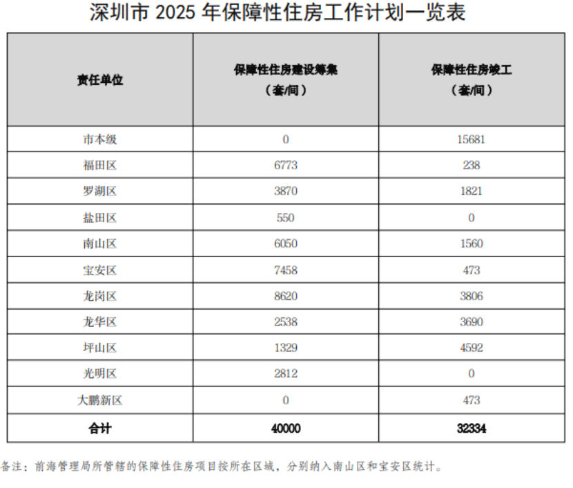 2025年,深圳計劃新安排建設(shè)籌集保障性住房4萬套(間),計劃竣工保障性住房3.23萬套(間)。