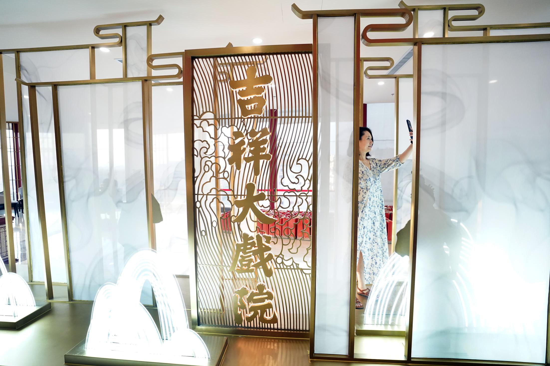 “在燈光、音響設(shè)備方面,新建成的吉祥大戲院運(yùn)用了很多‘黑科技’,再加上特殊的裝修和裝飾,構(gòu)建起了聲場上的原聲劇場,演員表演可以不戴麥克風(fēng)?!奔榇髴蛟憾麻L富博洋說。這里并非當(dāng)下常見的大型扇形劇場,長方形的空間里,300多個(gè)座席分為上下兩層,觀眾無論坐在哪一排,與舞臺(tái)之間的距離都不算遠(yuǎn)。
