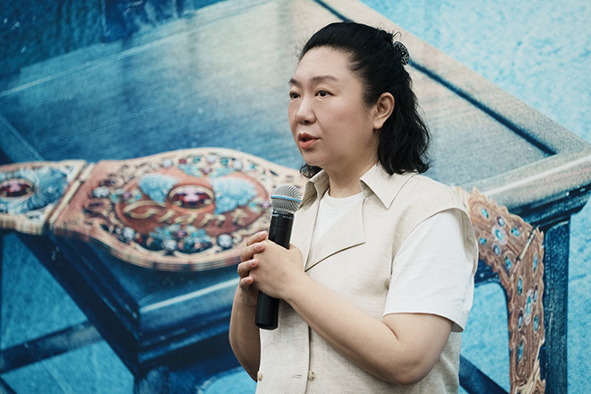談到話劇《搭手飛人》,她稱這部作品是中國國家話劇院守中華傳統(tǒng)文化之正,創(chuàng)意時代表達(dá)之新的作品?!皬膭≈械膫b義精神、武林規(guī)矩來談中華民族道德層面上的精神和智慧,重情重義、守正守信、獨(dú)立自強(qiáng)。通過這部劇,看懂中國人,做人行事的人文特質(zhì)和自覺意識,這種自覺,是高妙的智慧,是古老大國‘天人合一’的高維思想,庚續(xù)下來的‘中國自覺’。這部劇講述武林故事,也探討中國精神。期待在浩峰導(dǎo)演、呂波導(dǎo)演的舞臺構(gòu)想中,讓觀眾沉浸武林,認(rèn)知中國。”