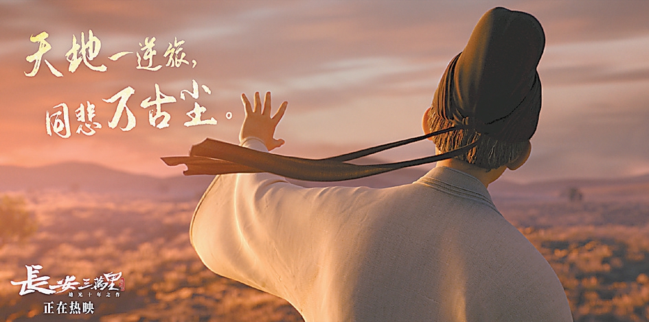 如果說(shuō)張藝謀執(zhí)導(dǎo)的《滿江紅》,成功點(diǎn)燃了觀眾對(duì)岳飛創(chuàng)作的《滿江紅》這首詞的熱情。那么,動(dòng)畫(huà)電影《長(zhǎng)安三萬(wàn)里》中48首唐詩(shī)的出現(xiàn),則讓觀眾對(duì)唐朝詩(shī)歌的熱愛(ài),開(kāi)啟了一次全年齡段的追捧。小學(xué)生們?cè)陔娪霸豪锛w朗誦唐詩(shī)的畫(huà)面,是一道只有中國(guó)才有的文化景觀。正如中國(guó)電影家協(xié)會(huì)副主席尹鴻評(píng)價(jià),“該片創(chuàng)造了一個(gè)傳承創(chuàng)新的范例,找到了傳統(tǒng)文化現(xiàn)代化表達(dá)的全新角度?!?/p>