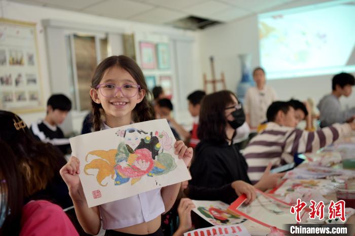 當(dāng)?shù)貢r(shí)間9月10日,天津楊柳青木版年畫博物館、巴西圣保羅華僑天主堂中文學(xué)校聯(lián)合舉辦年畫傳承研習(xí)活動(dòng)。圖為一位巴西小學(xué)生展示她的年畫涂色作品。中新社記者 林春茵 攝