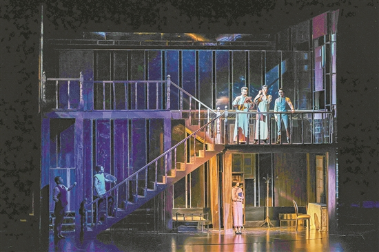 《春園·1923》采用了360度旋轉(zhuǎn)舞臺(tái)的設(shè)計(jì)。通過(guò)豐富的舞臺(tái)轉(zhuǎn)場(chǎng),春園和曾為中共三大會(huì)址的兩層小樓凝練地佇立在同一空間,隨著舞臺(tái)旋轉(zhuǎn)、時(shí)空切換,人物在場(chǎng)景內(nèi)外自如穿梭,推進(jìn)著故事的發(fā)展。